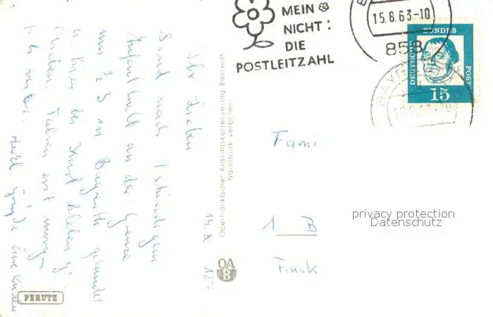 Bayreuth Opernhaus Festspielhaus Bahnhofsplatz Eremitage Brautgasse Luitpoldplatz Markgrafenbrunnen Bayreuth postalisch gelaufen 1963 Erhaltung siehe scans [WerneD78] WernPID7