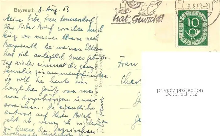 Bayreuth Ortspartie Bayreuth postalisch gelaufen 1953 Erhaltung siehe scans [WerneD78] WernPID7