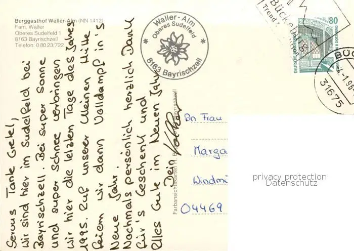 Bayrischzell Berggasthof Wallner Alm Bayrischzell postalisch gelaufen 1997 Erhaltung siehe scans [WerneD78] WernPID7