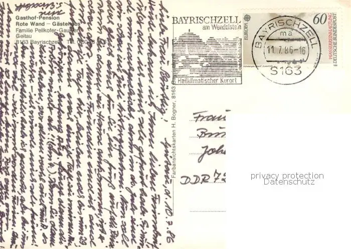 Bayrischzell Gasthof Pension Rote Wand Gaestehaus Bayrischzell postalisch gelaufen 1986 Erhaltung siehe scans [WerneD78] WernPID7