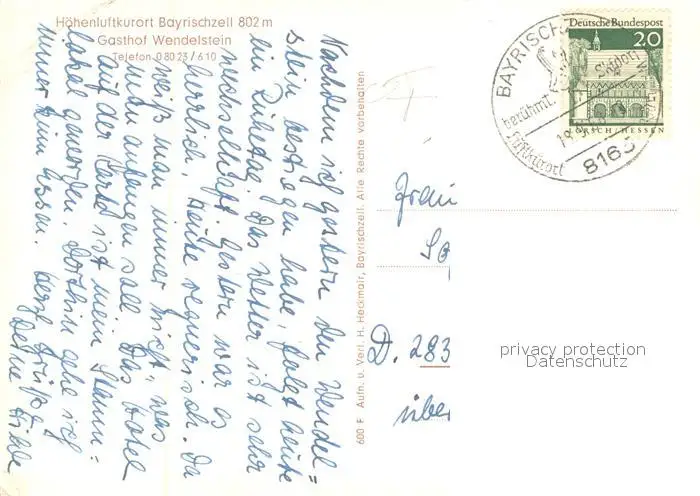 Bayrischzell Gasthof Wendelstein Bayrischzell postalisch gelaufen nach 1965 Erhaltung siehe scans [WerneD78] WernPID7