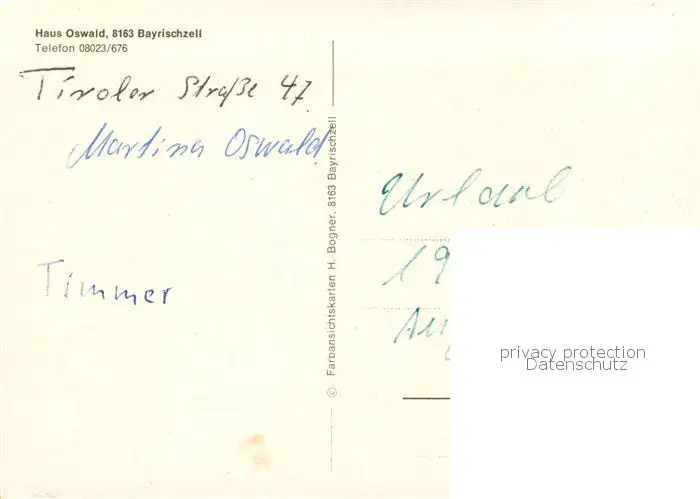 Bayrischzell Haus Oswald Aussenansicht Bayrischzell postalisch nicht gelaufen 1985 Erhaltung siehe scans [LiesaD40] LiesID40