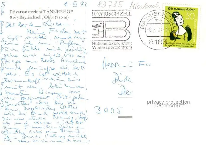 Bayrischzell Privatsanatorium Tannerhof Bayrischzell postalisch gelaufen 1982 Erhaltung siehe scans [LiesaD40] LiesID40