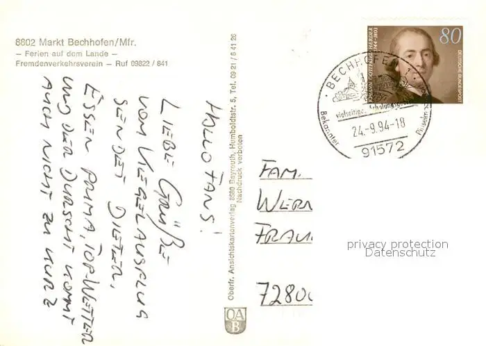 Bechhofen_Mittelfranken Blick zur Kirche Schule Strassenpartie Bechhofen Mittelfranken postalisch gelaufen 1994 Erhaltung siehe scans [FriedD77] Frierer