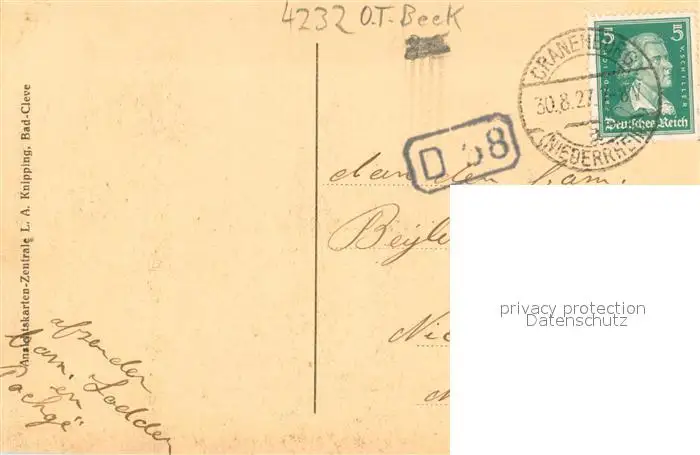 Beek Vossenberg Beek Persingen Beek postalisch gelaufen 1927 Erhaltung siehe scans [LiesaD40] LiesID40