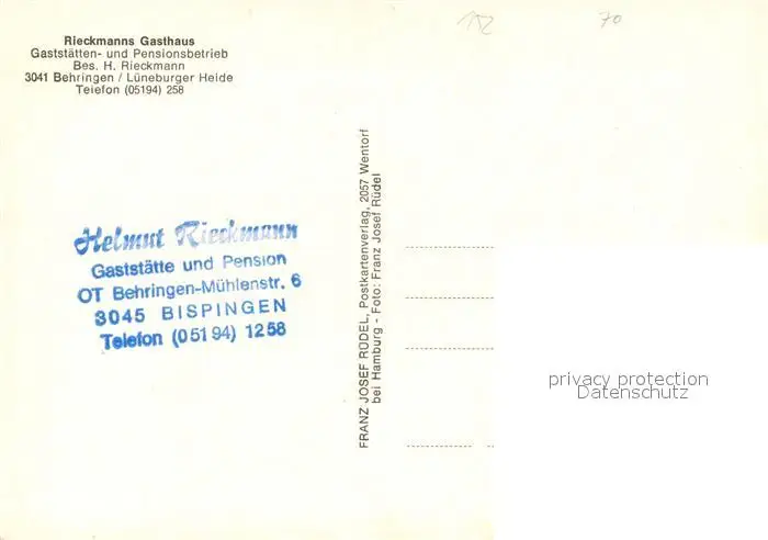 Behringen_Bispingen Rieckmanns Gasthaus Behringen Bispingen postalisch nicht gelaufen nach 1965 Erhaltung siehe scans [PaolaD17] PaolPID1