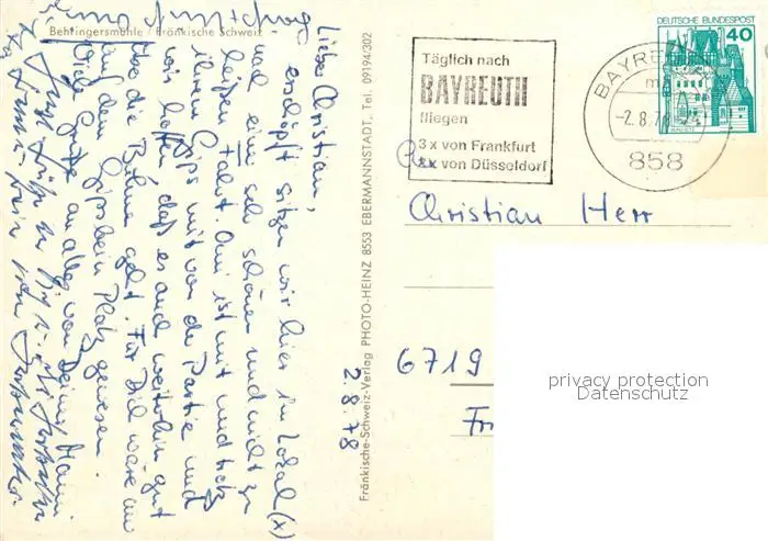 Behringersmuehle Behringersmuehle postalisch gelaufen 1978 Erhaltung siehe scans [LiesaD40] LiesID40
