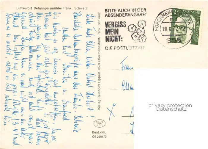 Behringersmuehle Luftkurort Fraenkische Schweiz Behringersmuehle postalisch gelaufen 1972 Erhaltung siehe scans [FriedD77] Frierer