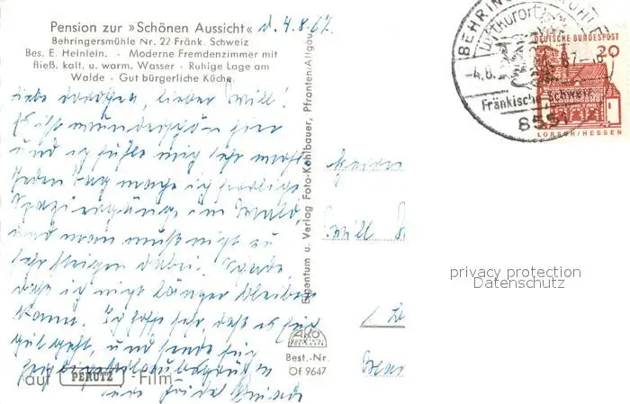 Behringersmuehle Pension zur Schoenen Aussicht Behringersmuehle postalisch gelaufen 1967 Erhaltung siehe scans [WerneD78] WernPID7