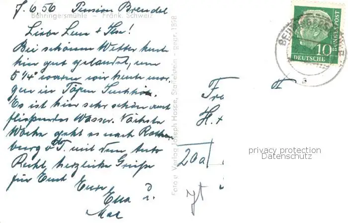 Behringersmuehle_Goessweinstein Ortsansicht mit Pension Brendel postalisch gelaufen 1956 Erhaltung siehe scans [WerneD78] WernPID7