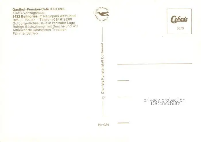 Beilngries Gasthof Pension Cafe Krone Beilngries postalisch nicht gelaufen nach 1965 Erhaltung siehe scans [WerneD78] WernPID7