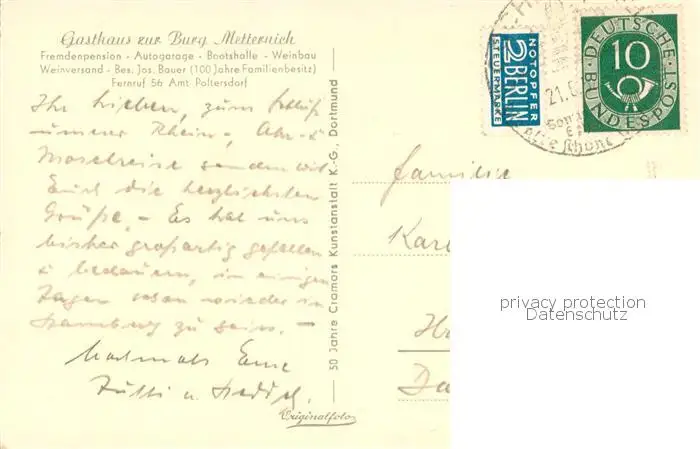 Beilstein_Mosel Gasthaus zur Burg Metternich Terrasse Beilstein_Mosel postalisch gelaufen 1921-1965 Erhaltung siehe scans [FriedD77] Frierer