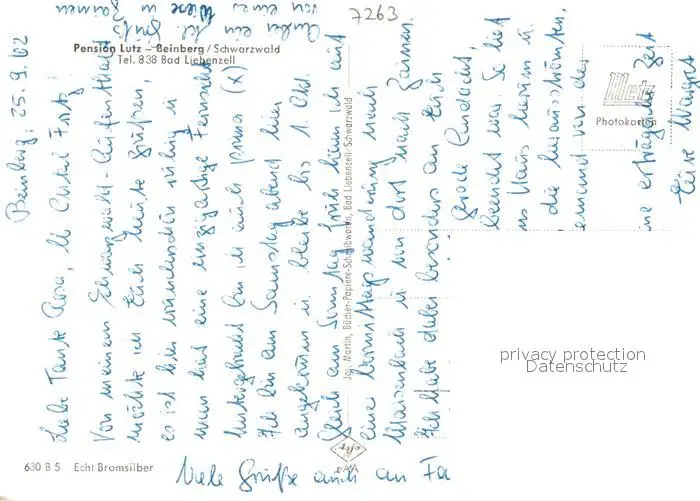 Beinberg Pension Freibad Landschaftspanorama Schwarzwald Kirche Beinberg postalisch nicht gelaufen 1962 Erhaltung siehe scans [FriedD77] Frierer