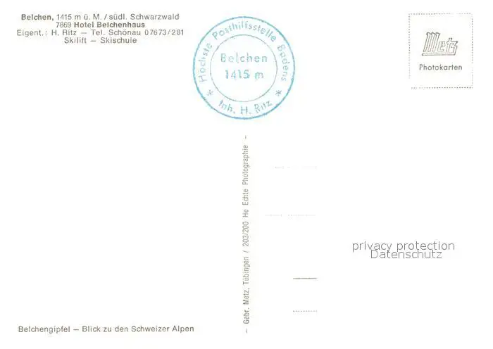 Belchen_Baden Hotel Belchenhaus Belchen_Baden postalisch nicht gelaufen nach 1965 Erhaltung siehe scans [LiesaD40] LiesID40