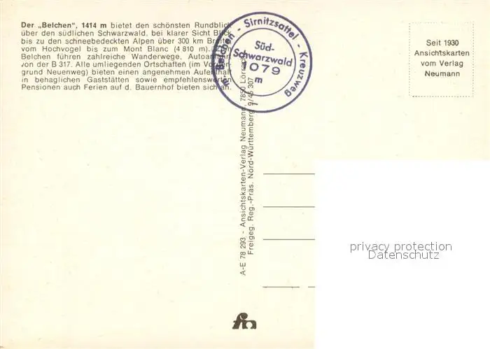Belchen_Baden Suedlicher Schwarzwald Belchen_Baden postalisch nicht gelaufen nach 1965 Fliegeraufnahme Erhaltung siehe scans [FriedD77] Fliegeraufnahme Frierer