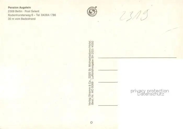 Bellin_Holstein Pension Augstein Fremdenzimmer Fliegeraufnahme Bellin_Holstein postalisch nicht gelaufen nach 1965 Erhaltung siehe scans [FriedD77] Frierer