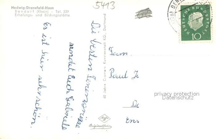 Bendorf_Rhein Hedwig Dransfeld Haus Bendorf Rhein postalisch gelaufen 1921-1965 Erhaltung siehe scans [WerneD78] WernPID7