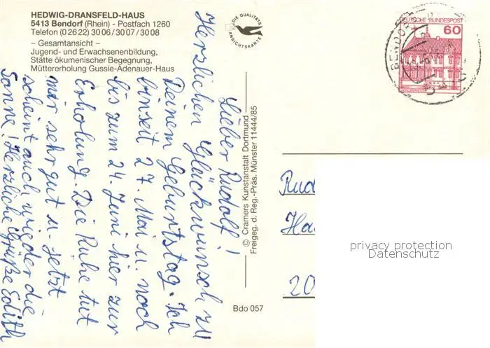 Bendorf_Rhein Hedwig Dransfeld Haus Fliegeraufnahme Bendorf Rhein postalisch gelaufen nach 1965 Erhaltung siehe scans [WerneD78] WernPID7