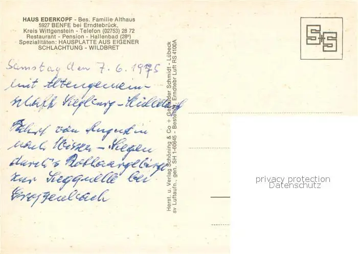 Benfe Fliegeraufnahme mit Haus Ederkopf Benfe postalisch nicht gelaufen nach 1965 Erhaltung siehe scans [WerneD78] WernPID7