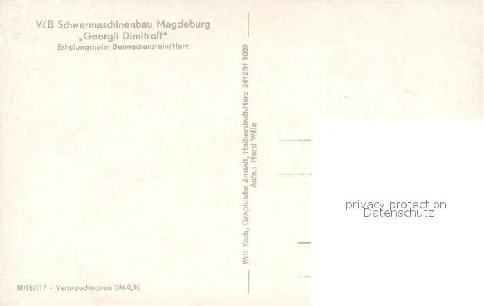 Benneckenstein_Harz Kategorie Alte Ansichtskarten Postkarten bx74511 Benneckenstein_Harz Erholungsheim Georgii Dimitroff Benneckenstein_Harz postalisch nicht gelaufen Erhaltung siehe scans [PaolaD17]