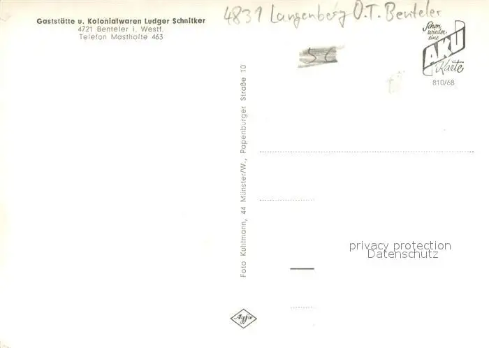 Benteler Kirche Schwanenteich Ortspartie Denkmal Gaststaette Schnitker Benteler postalisch nicht gelaufen 1921-1965 Erhaltung siehe scans [WerneD78] WernPID7