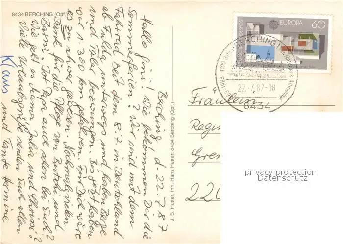 Berching Frauenturm Parkanlage Wehrmauer Vorstadt Kirche Chinesenturm Berching postalisch gelaufen 1987 Erhaltung siehe scans [FriedD77] Frierer