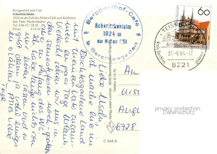 Berchtesgaden 0 Berchtesgaden postalisch gelaufen 1984 Erhaltung siehe scans [FriedD77] Frierer