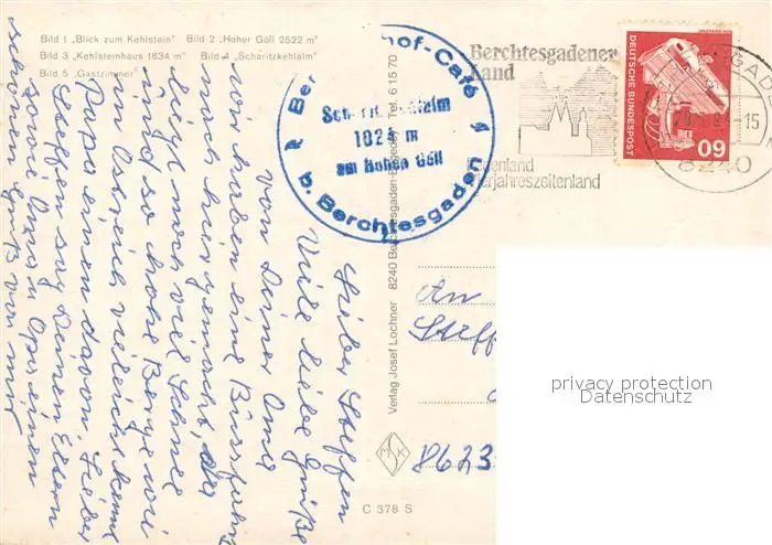 Berchtesgaden Berggasthof Café Scharitzkehlalm am hohen Goell Kohlsteinhaus Alpen Berchtesgaden postalisch gelaufen 1984 Erhaltung siehe scans [FriedD77] Frierer
