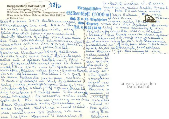 Berchtesgaden Berggaststaette Soeldenkoepfl am Soleleitungsweg Terrasse Berchtesgaden postalisch nicht gelaufen nach 1965 Erhaltung siehe scans [WerneD78] WernPID7