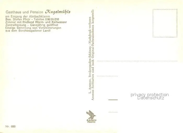 Berchtesgaden Gasthaus Pension Kugelmuehle Berchtesgaden postalisch nicht gelaufen nach 1965 Erhaltung siehe scans [WerneD78] WernPID7
