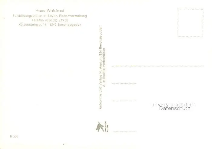 Berchtesgaden Haus Waldrast Fortbildungsstaette der Bayerischen Finanzverwaltung Alpen Berchtesgaden postalisch nicht gelaufen nach 1965 Erhaltung siehe scans [FriedD77] Frierer