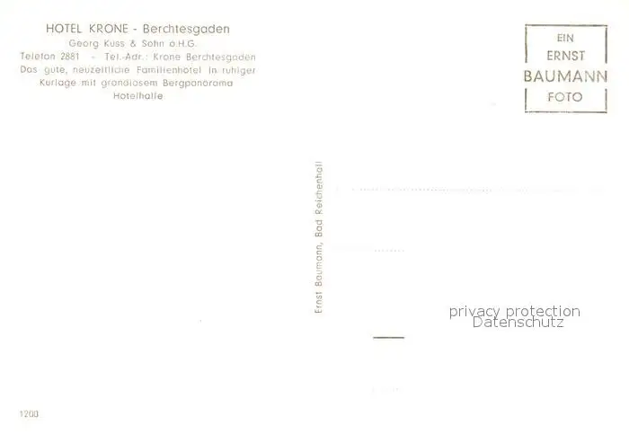 Berchtesgaden Hotel Krone Hotelhalle Berchtesgaden postalisch nicht gelaufen 1921-1965 Erhaltung siehe scans [FriedD77] Frierer