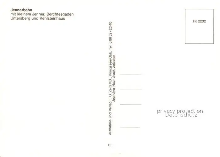 Berchtesgaden Jennerbahn kleine Jenner Untersberg Kehlsteinhaus Berchtesgaden postalisch nicht gelaufen nach 1965 Erhaltung siehe scans [NatalD47] NataID47
