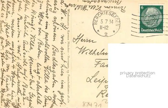 Berchtesgaden Villa Waldrast Ortsansicht Berchtesgaden postalisch gelaufen 1934 Erhaltung siehe scans [WerneD78] WernPID7