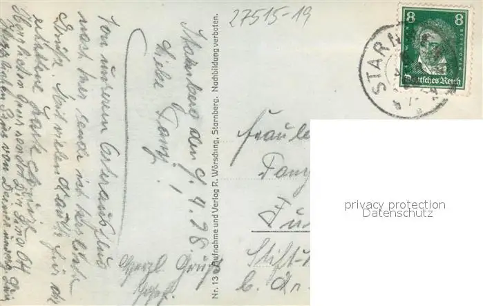 Berg_Starnberg Schloss Ansicht vom Starnberger See aus Berg_Starnberg postalisch gelaufen 1928 Erhaltung siehe scans [FriedD77] Frierer