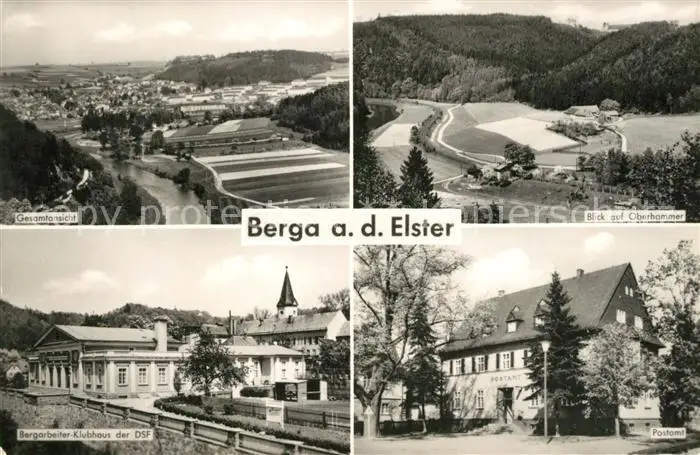 AK / Ansichtskarte Berga_Elster Panorama Blick auf Oberhammer Postamt Bergarbeiter Klubhaus der DSF Berga_Elster