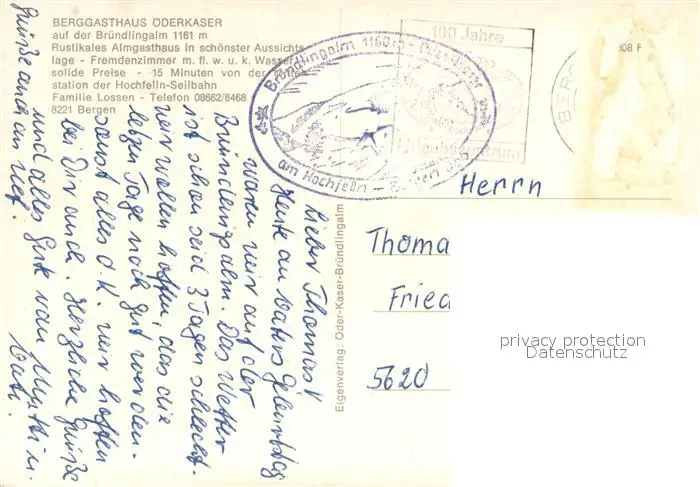 Bergen_Chiemgau Berggasthaus oederkaser auf der Bruendlingsalm Almgasthaus Alpen Bergen Chiemgau postalisch gelaufen nach 1965 Erhaltung siehe scans [FriedD77] Frierer