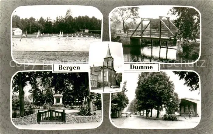 AK / Ansichtskarte Bergen_Dumme Schwimmbad Ziehbruecke Monument Bergen Dumme