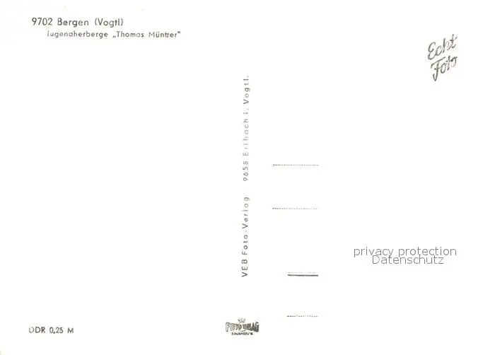 Bergen_Vogtland Jugendherberge Thomas Muentzer postalisch nicht gelaufen nach 1965 Erhaltung siehe scans [KathaD81] Kathoren