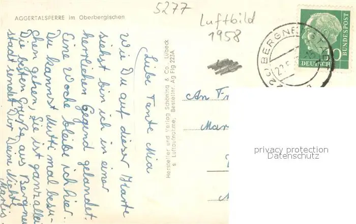 Bergneustadt Aggertalsperre im Oberbergischen Bergneustadt postalisch gelaufen 1958 Fliegeraufnahme Erhaltung siehe scans [FriedD77] Fliegeraufnahme Frierer