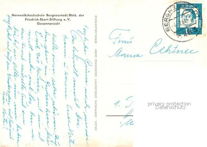 Bergneustadt Heimvolkshochschule der Friedrich Ebert Stiftung Bergneustadt postalisch gelaufen 1964 Erhaltung siehe scans [WerneD78] WernPID7