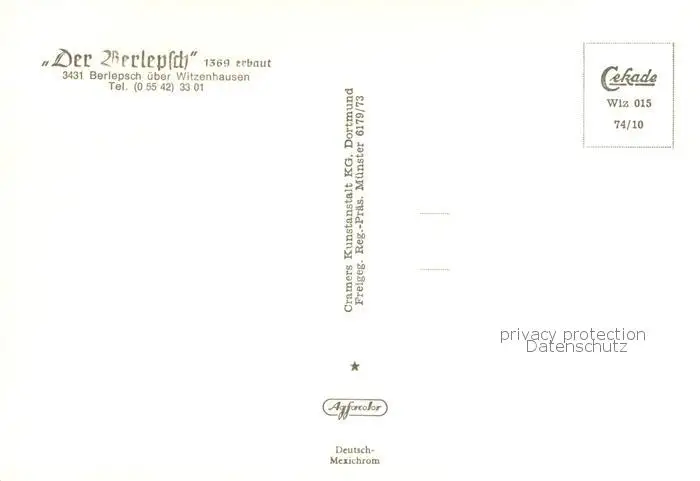 Berlepsch-Ellerode_Witzenhausen Der Berlepsch Fliegeraufnahme postalisch nicht gelaufen nach 1965 Erhaltung siehe scans [WerneD78] WernPID7