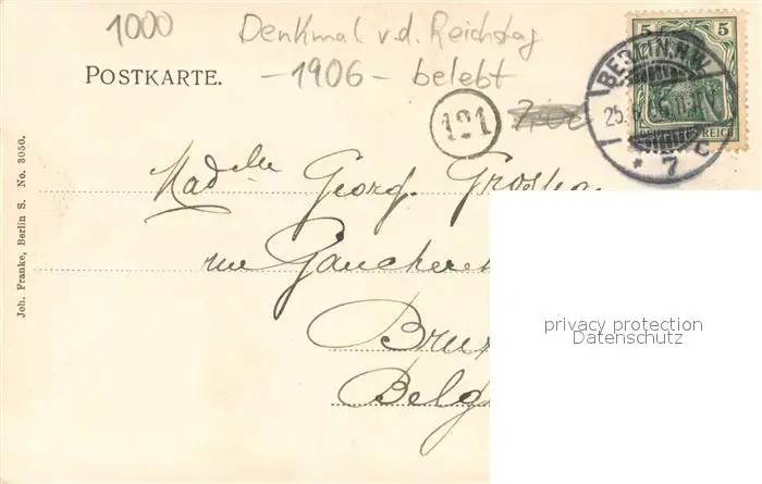 Berlin Bismarck-Denkmal v. d. Reichstag belebt Berlin postalisch gelaufen 1906 Erhaltung siehe scans [LiesaD40] LiesID40