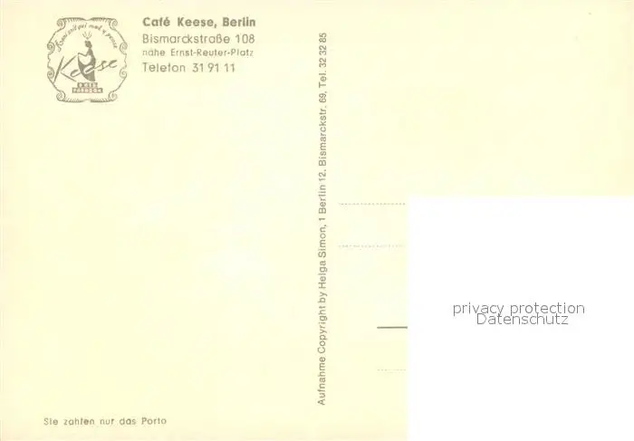 Berlin Cafe Keese Innenansicht Berlin postalisch nicht gelaufen nach 1965 Erhaltung siehe scans [LiesaD40] LiesID40