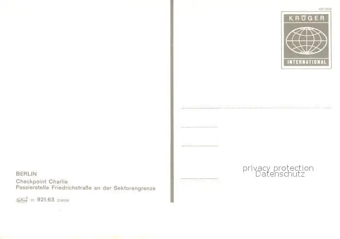 Berlin Checkpoint Charlie Sektorengrenze Berlin postalisch nicht gelaufen nach 1965 Erhaltung siehe scans [KathaD81] Kathoren