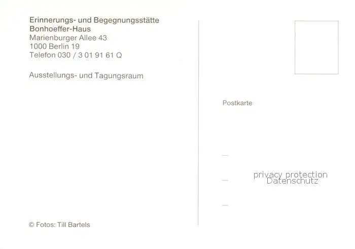 Berlin Erinnerungs und Begegnungsstaette Bonhoeffer Haus Berlin postalisch nicht gelaufen nach 1965 Erhaltung siehe scans [KathaD81] Kathoren