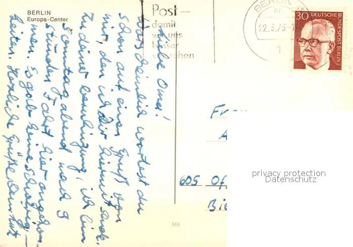 Berlin Europa-Center Berlin postalisch gelaufen 1973 Erhaltung siehe scans [PaolaD17] PaolPID1