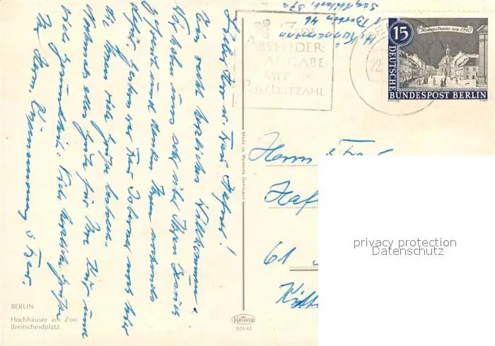 Berlin Hochhaeuser am Zoo Breitscheidplatz Berlin postalisch gelaufen 1921-1965 Erhaltung siehe scans [FriedD77] Frierer