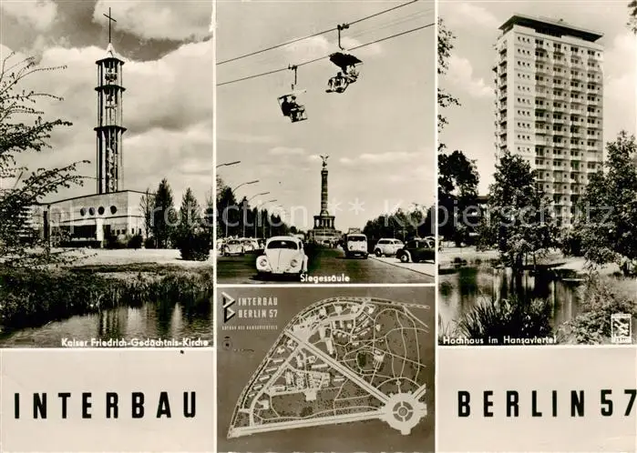 AK / Ansichtskarte Berlin Interbau Berlin 57 Kaiser Friedrich Gedaechtnis Kirche Siegessaeule Hochhaus im Hansaviertel Berlin