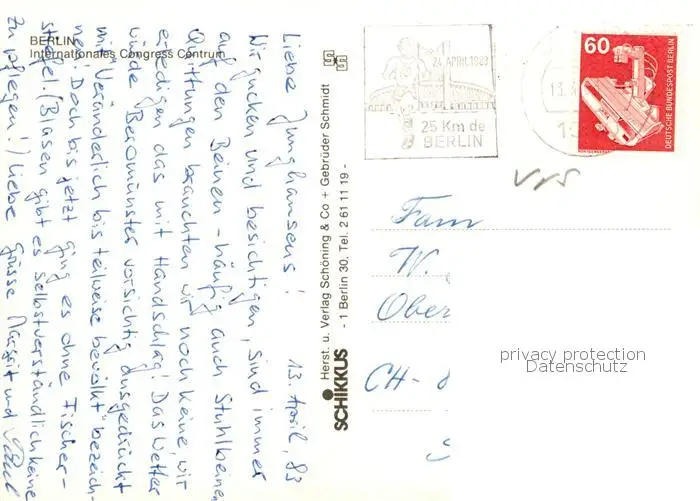 Berlin Internationales Congress Centrum Berlin postalisch gelaufen 1983 Erhaltung siehe scans [WerneD78] WernPID7